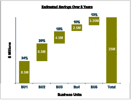 White Room Associates adopted its proven methodology to develop the business case and detailed implementation plan. By applying an easy to understand, but analytically rigorous framework across various business units, we proposed a staged approach. Beside tangible service improvements, our client is expected to generate over a 5 year period total cost savings of $25M.